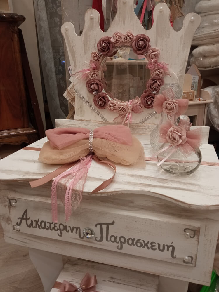 Στο χώρο της θα βρείτε επίσης στέφανα, λαμπάδες, ιδέες για ανθοσυνθέσεις, πρωτότυπα προσκλητήρια και ό,τι άλλο χρειάζεται για να οργανώσει με προσωπική φροντίδα η ιδιοκτήτρια το event της βάπτισης του παιδιού σας!