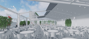 Δύο χώρους (700 τ.μ. ο καθένας). Οι παραπάνω μοντέρνοι χώροι σε industrial ρυθμούς και χωρίς κολώνες, μπορούν να λειτουργήσουν ως εξωτερικοί ή εσωτερικοί, ανάλογα με την επιθυμία των ενδιαφερόμενων, καθώς και των καιρικών συνθηκών που θα επικρατούν την ημέρα της δεξίωσης, αφού η οροφή τους μπορεί να ανοιγοκλείνει ηλεκτρονικά. Αξίζει να σημειωθεί ότι οι δύο αυτοί χώροι εφάπτονται και έχουν τη δυνατότητα να ενωθούν δημιουργώντας ένα ενιαίο χώρο, με δυνατότητα φιλοξενίας μεγαλύτερη των 1000 καλεσμένων.