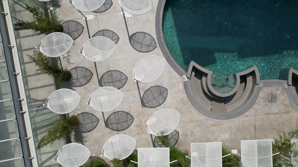 Πισίνα η οποία δεσπόζει σε έναν μοναδικά καλαίσθητο εξωτερικό χώρο (800 τ.μ.) και συνδυάζει την απόλυτη χαλάρωση με την έντονη διασκέδαση. Αυτό υπόσχεται, τόσο το pool bar με τα μοναδικά αρώματα καφέ, ποτά, ιδιαίτερα cocktails, όσο και ο chef που με την έμπειρη ομάδα του, ξυπνάει ευχάριστα τους γευστικούς κάλυκες των επισκεπτών.